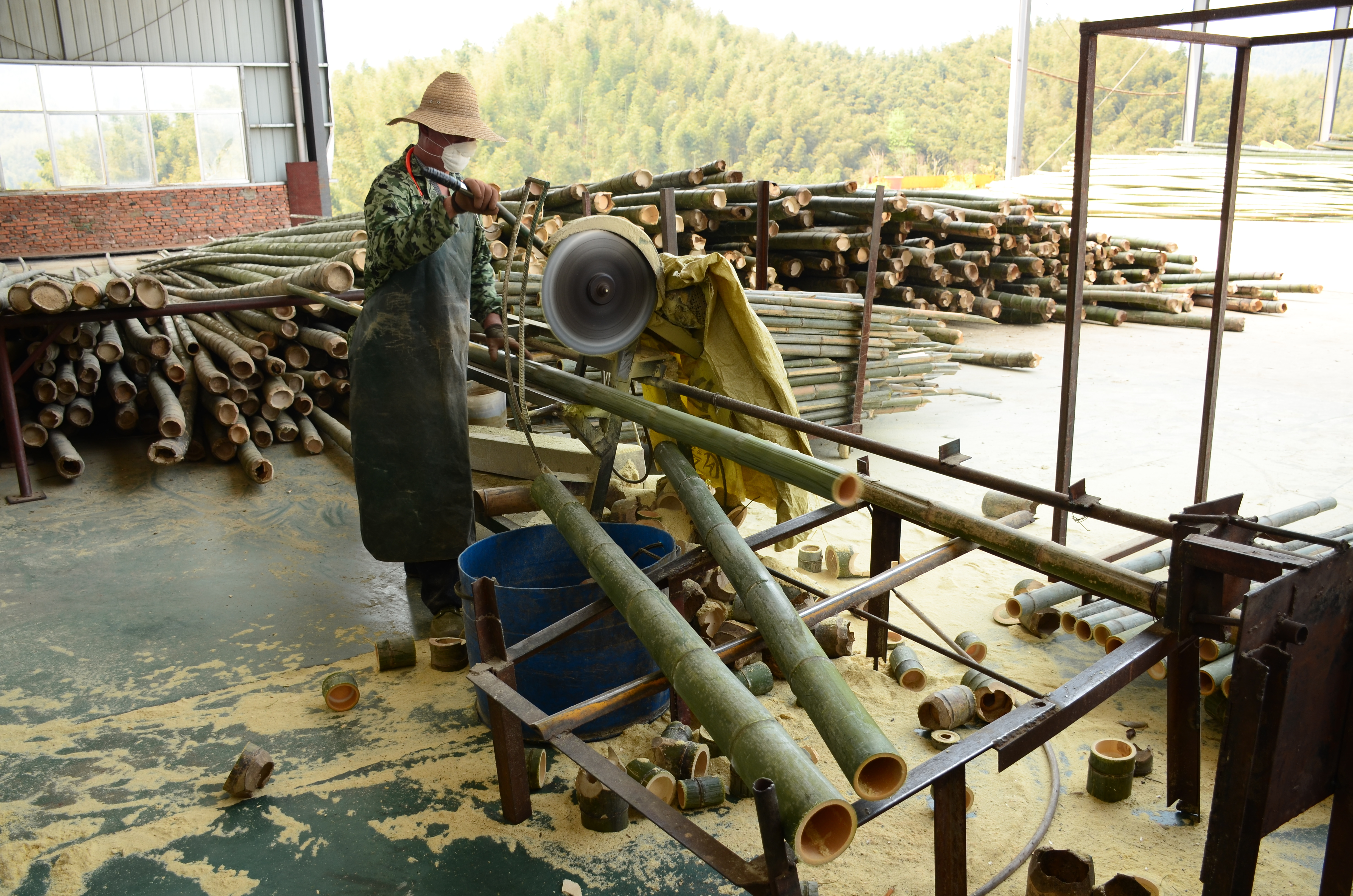 根據產品的長度再加上10cm的加工餘量截斷竹子取得竹段。