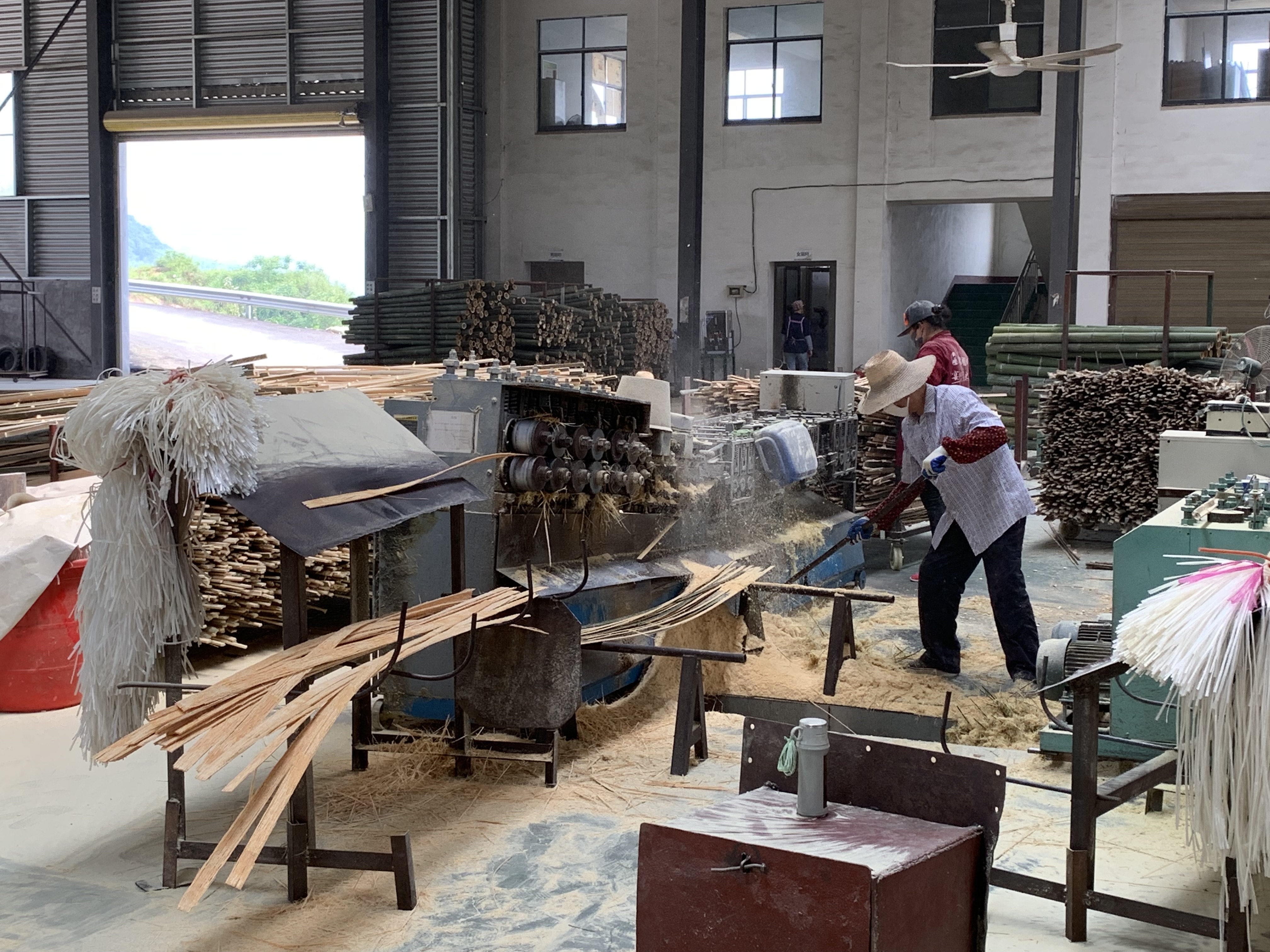 使用剖竹機將竹段鋸解成寬度大小一致的竹片。