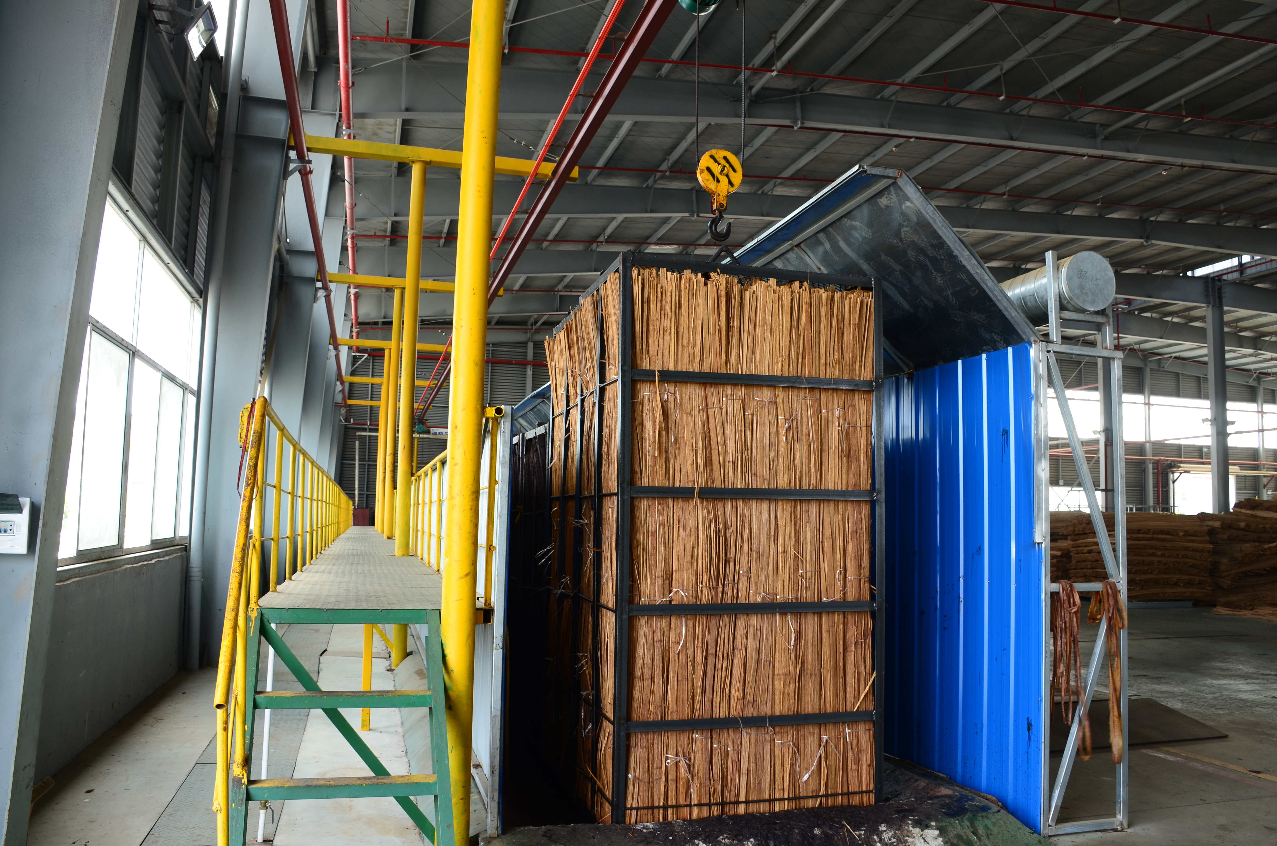 浸膠後的竹絲束,需進行二次乾燥,乾燥房溫度保持在40~50度C烘乾4~5小時,使含水率可降至10%以下。
