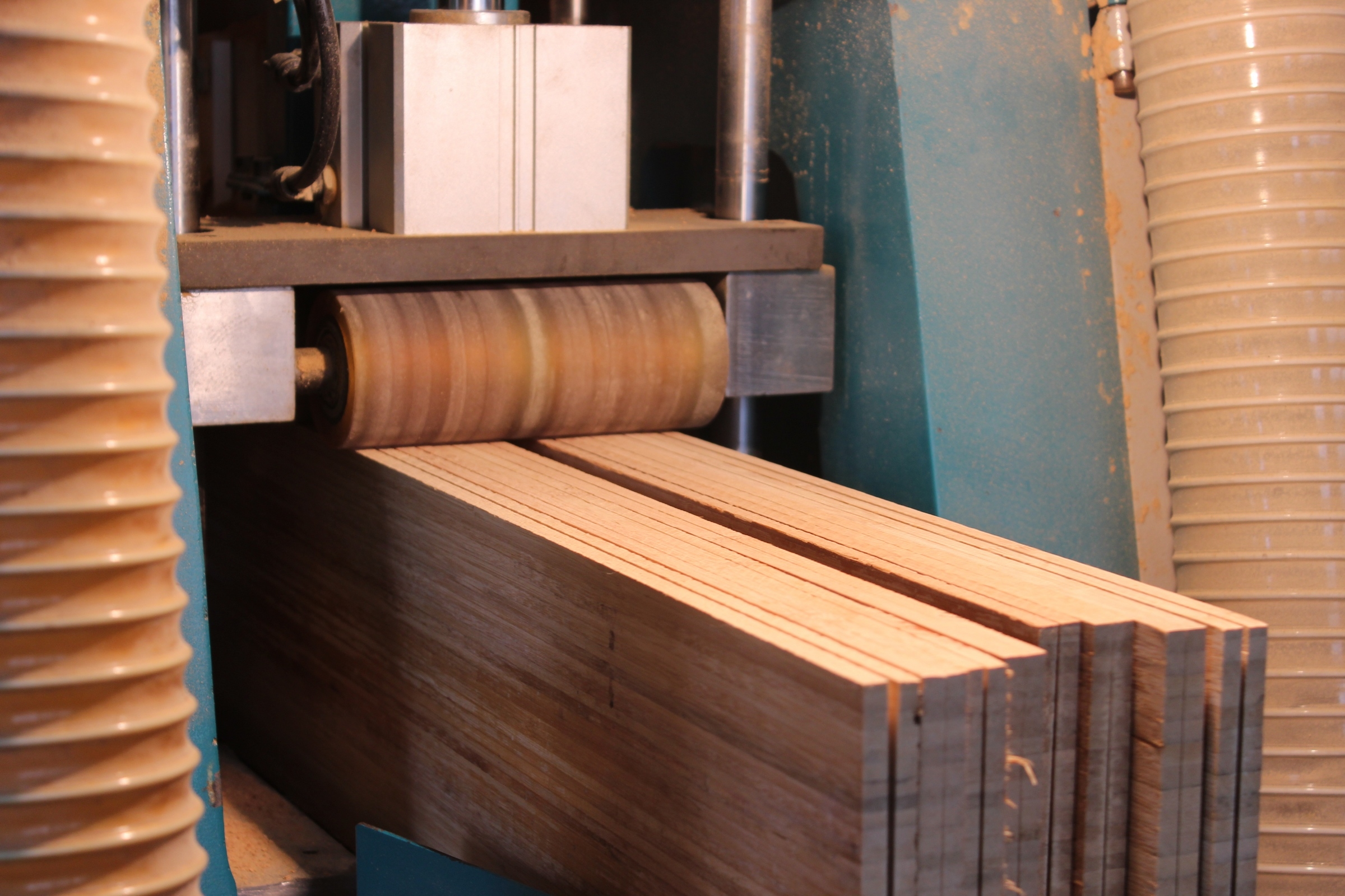 熱壓後的胚板,經冷卻後,進行縱橫向鋸邊或開料成要求的規模尺寸。