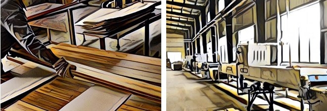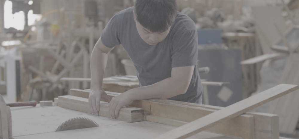 接著將竹炭木板材送到家具工廠,開始進行設計團隊的冰棒桌、冰棒椅打樣。