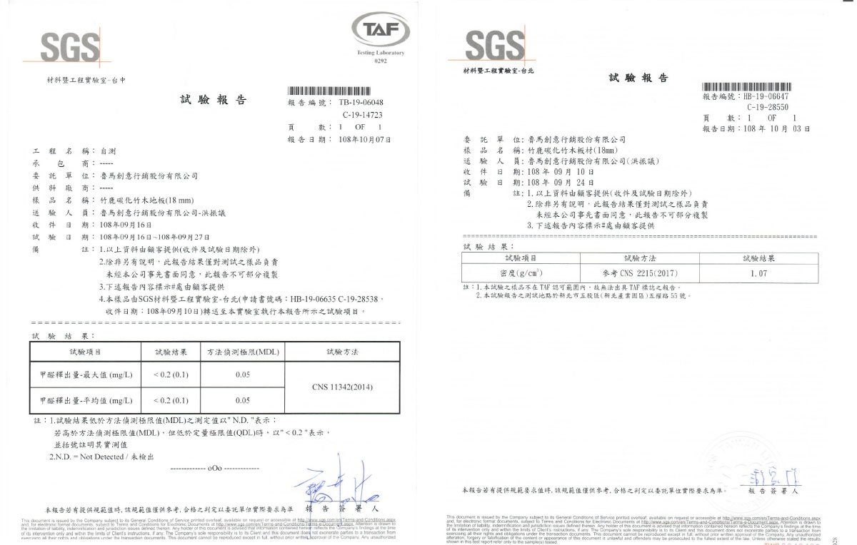 接著進行SGS的相關檢測,證實密度達1.00以上(這可是媲美超級木材:紫檀木的BOSS等級),甲醛在0.05 mg/L以內,超越台灣F1標準(0.3mg/L),到這個步驟就已經花了超過6個月的時間。